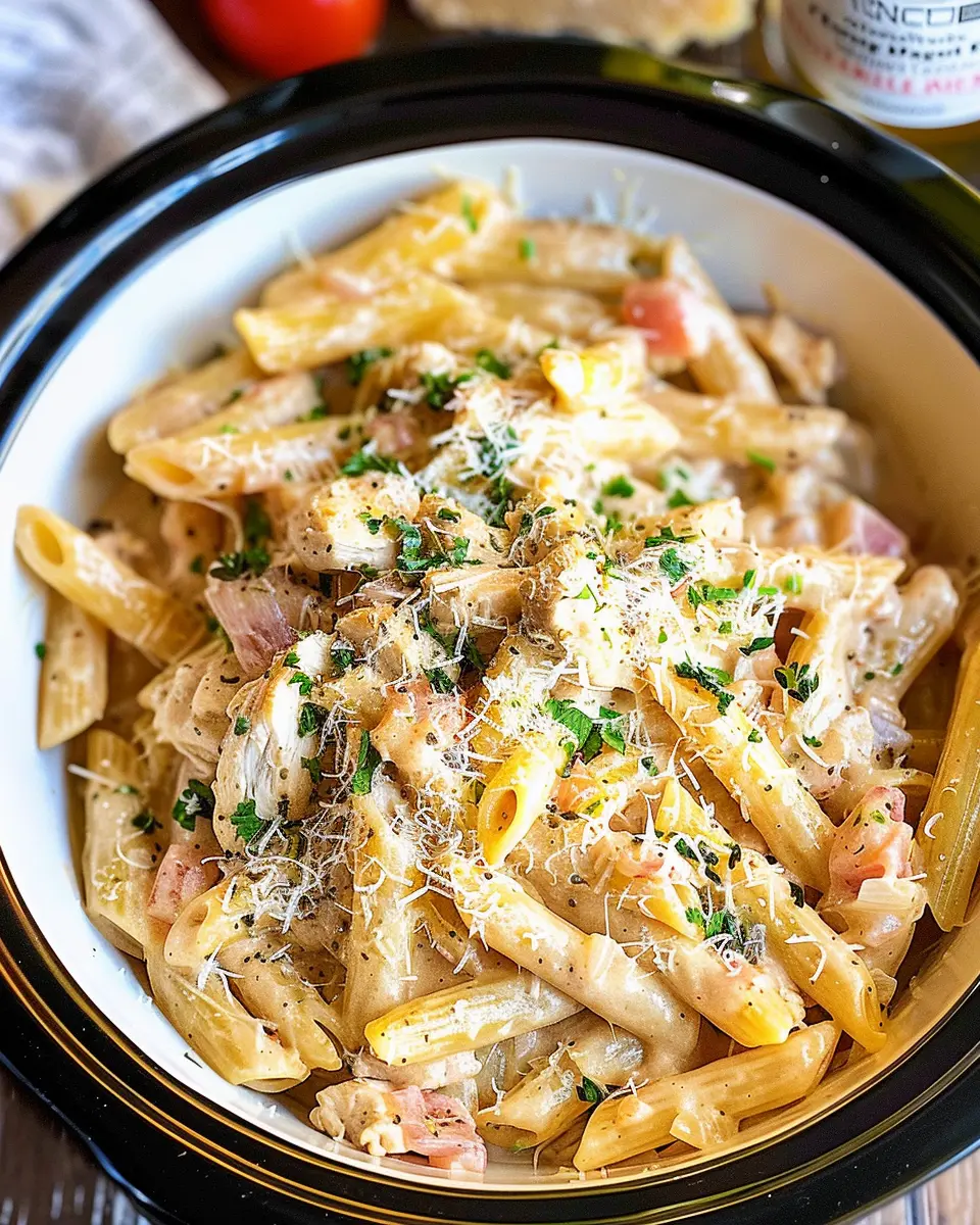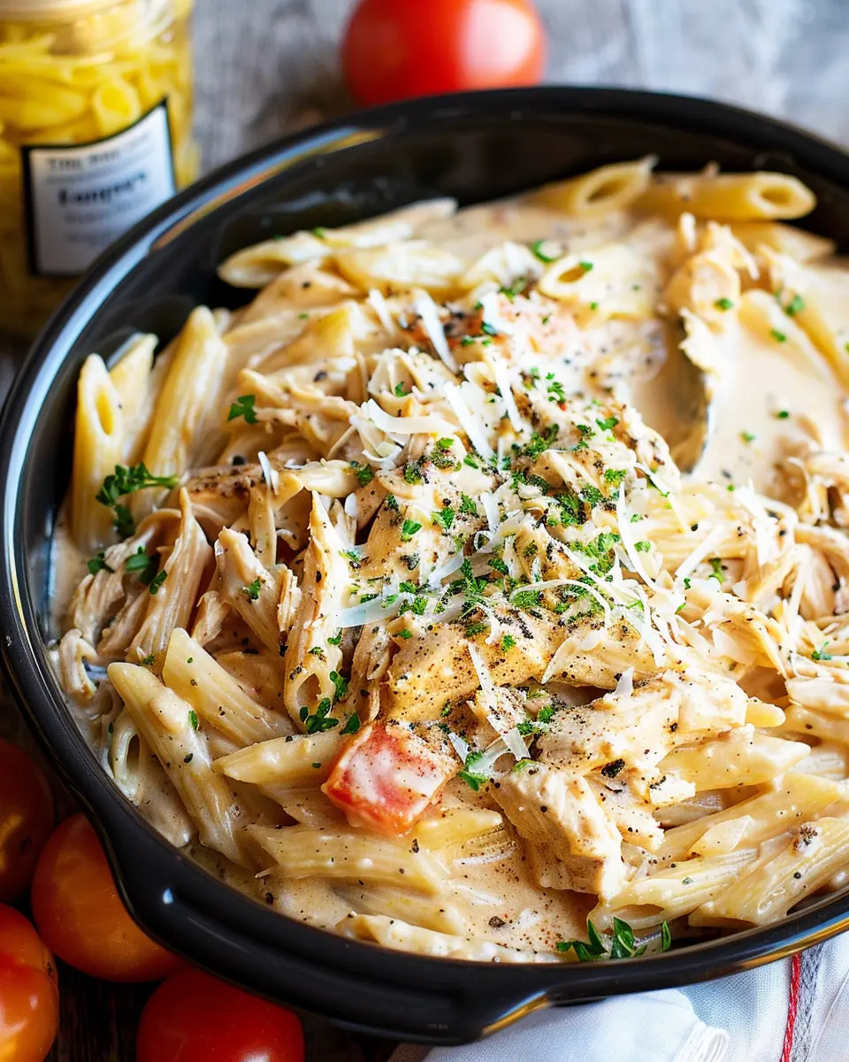 Now for the magic: set your slow cooker on low for 6–8 hours or high for 3–4 hours. This cooking time lets all the flavors blend beautifully, ensuring each bite of chicken and pasta is flavorful and tender.